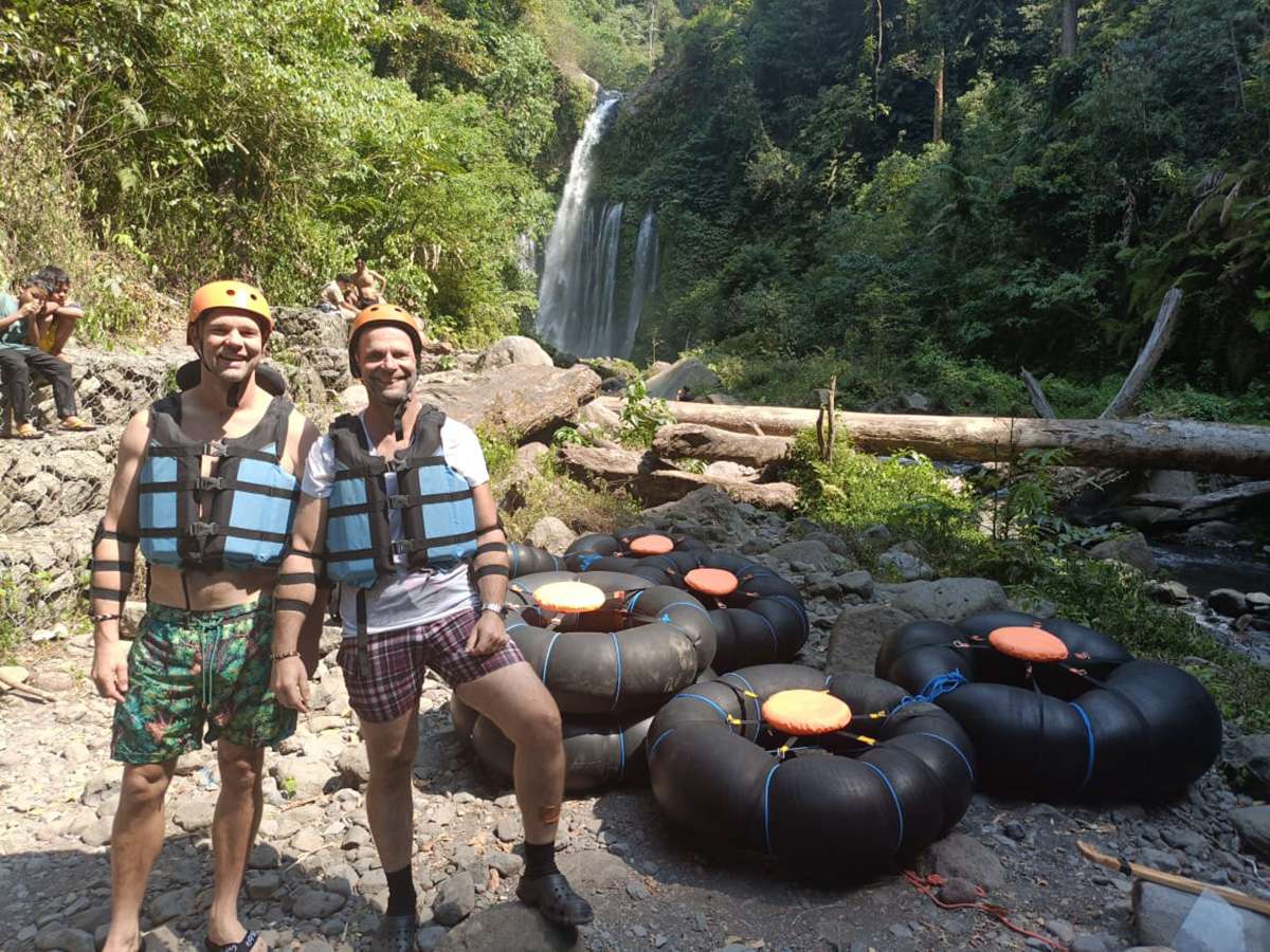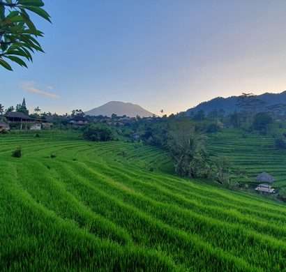 Around the volcanic mountain Gunung Rinjani you can enjoy walking through rice fields and waterfalls.